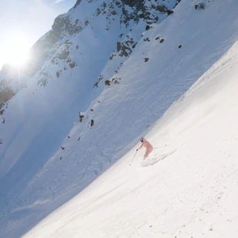 Adrenalin am Morgen: Wer sportlich in den Tag starten möchte, erlebt den Langen Zug – eine der steilsten Pisten der Welt – unter besten Bedingungen. Treffpunkt ist bei der Rüfikopfbahn. Im Anschluss ans Skierlebnis gibt es ein Veuve Clicquot-Frühstück im Schlegelkopf Restaurant.