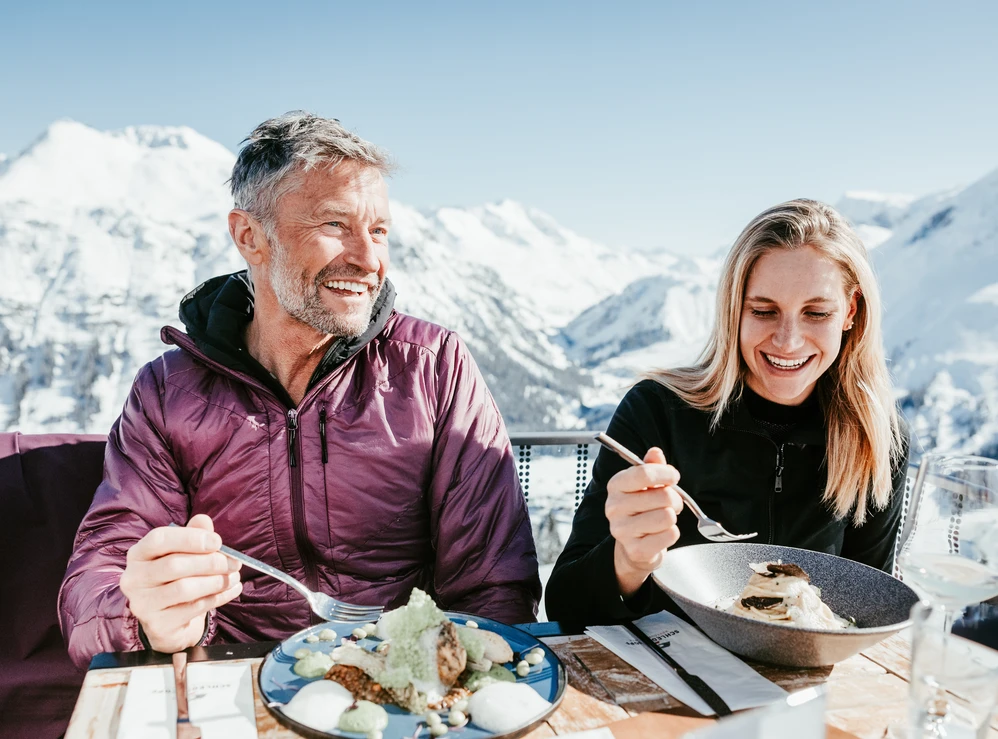Auch ohne Ski oder Snowboard lässt sich der kulinarische Winter im Skigebiet Lech Zürs entdecken. Mit dem Sonnenabo gelangen Genießerinnen und Genießer komfortabel per Bahn und Lift zu ausgewählten Hütten und Restaurants.