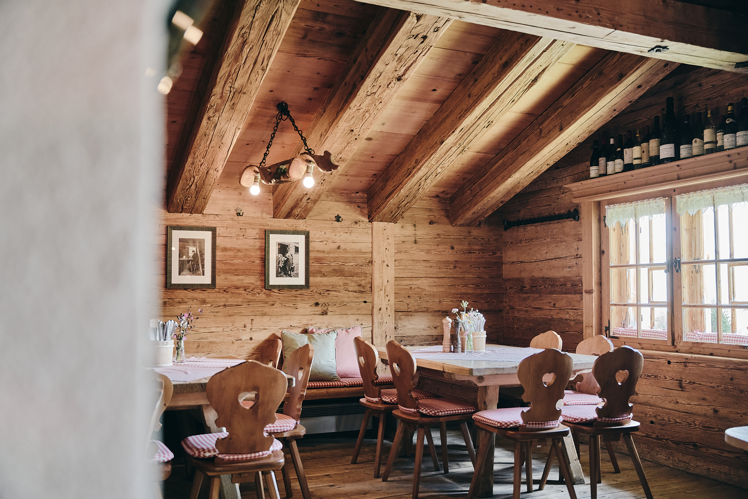 Das alpine Ambiente mit seiner gemütlich-traditionellen Architektur macht den besonderen Charme der Hütte aus. Hier zählen die einfachen Dinge – hausgemachte Spezialitäten wie Käsknöpfle, Brettljause, deftiger Hüttentopf oder Kaiserschmarrn. Dazu gesellen ausgesuchte Tropfen aus dem berühmten Weinkeller des Burg Hotels.