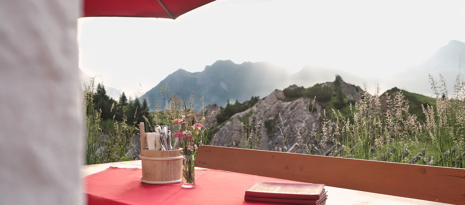 Im Winter lädt die perfekte Lage direkt an der Skipiste zum Einkehrschwung ein. Im Sommer wiederum wird die Alm zur Bühne für ein idyllisches Schauspiel: grasende Pferde und Kühe zwischen blühenden Almwiesen, begleitet von einer frischen Bergbrise. Von der Terrasse eröffnet sich ein atemberaubender Blick auf die majestätischen Gipfel, die die Kriegeralpe umrahmen.