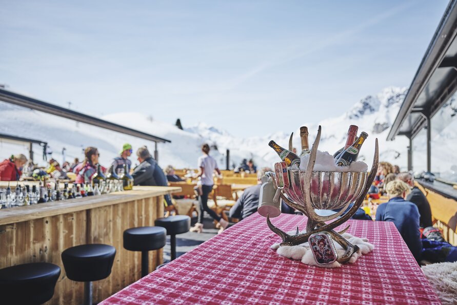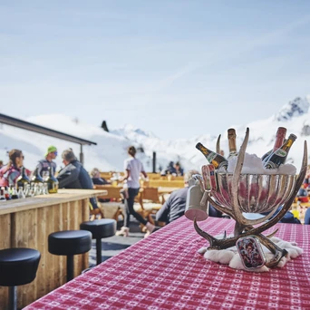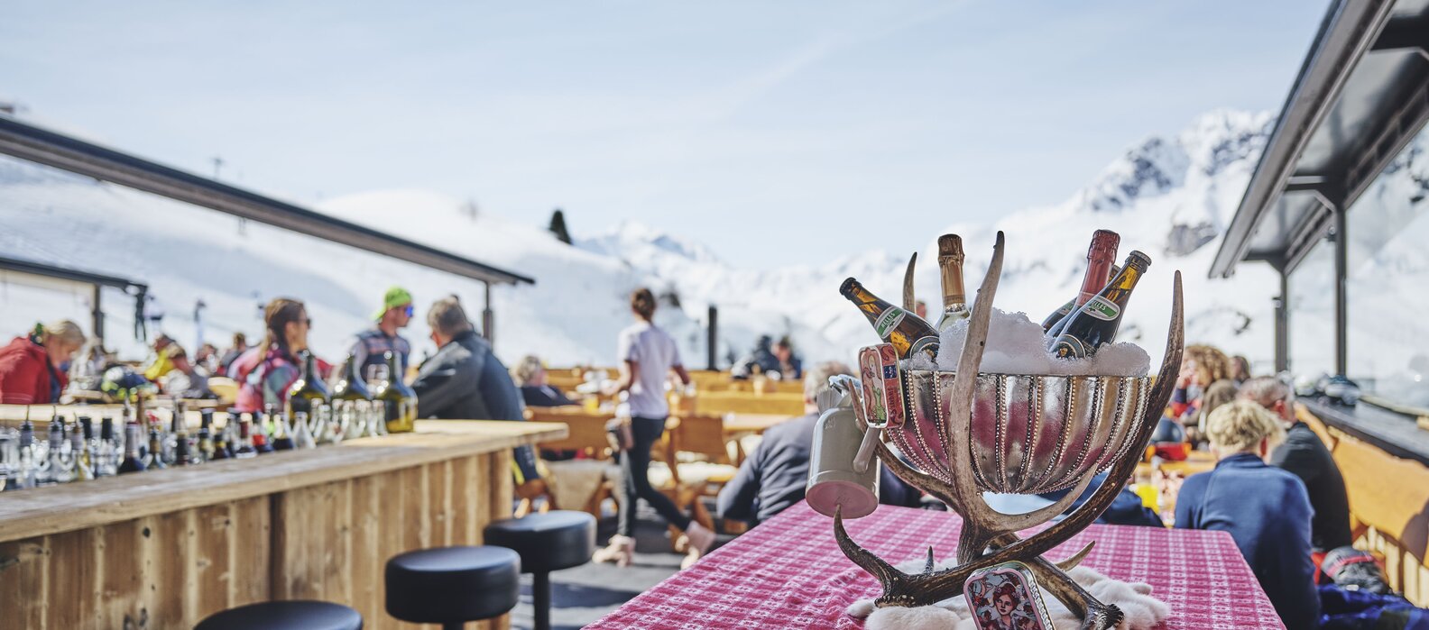 Nach einem erlebnisreichen Tag auf den Pisten lädt die Trittalpe zu einem genussvollen Ausklang ein. Auf der großzügigen Sonnenterrasse genießen Gäste den Blick auf die Bergwelt und eine entspannte Atmosphäre. Ob ein Glas Champagner, ein heißer Glühwein oder ein frisch gemixter Cocktail – hier verbinden sich Genuss und Geselligkeit auf harmonische Weise.