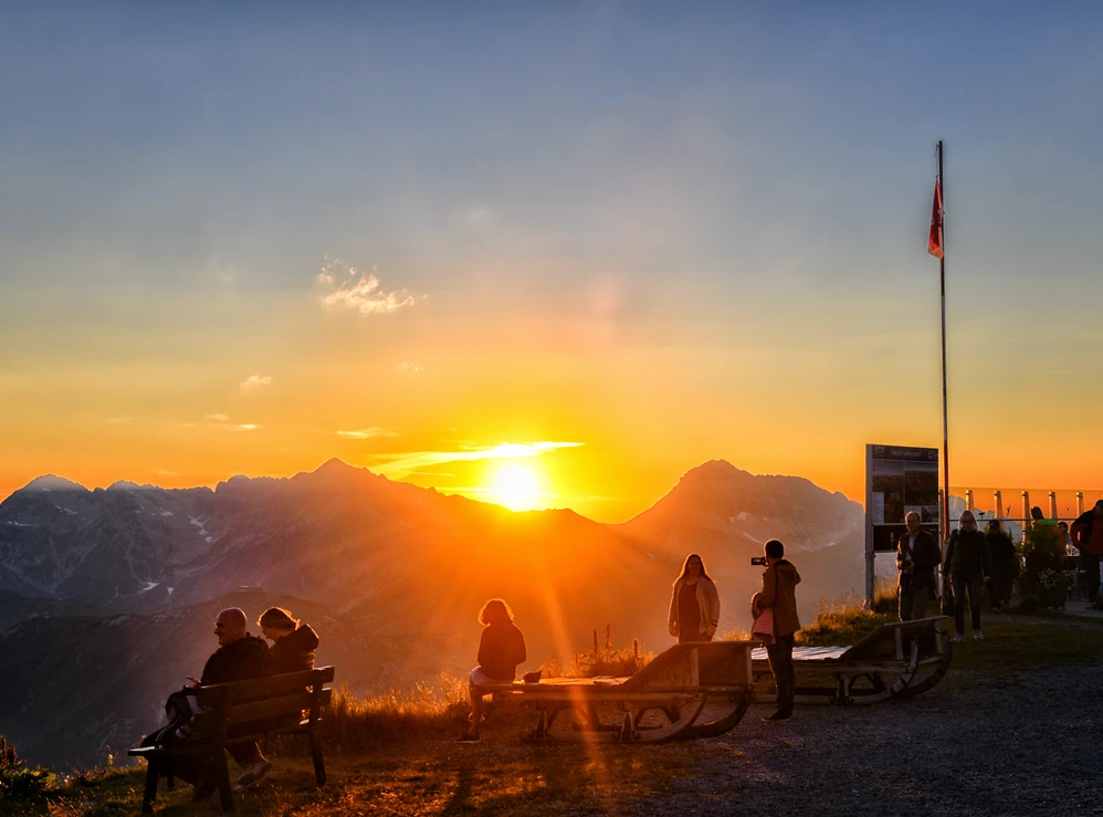 Von kulinarischen Erlebnissen bis zu stimmungsvollen Abenden: Der Sommer am Rüfikopf ist nicht nur von Naturerlebnissen geprägt, sondern auch von geselligen Momenten. Das Gipfelfrühstück mit Panoramablick, Kaffee- und Kuchenfahrten, musikalische Frühschoppen oder die Erlebnisabende bringen Genuss und Unterhaltung in luftiger Höhe zusammen.