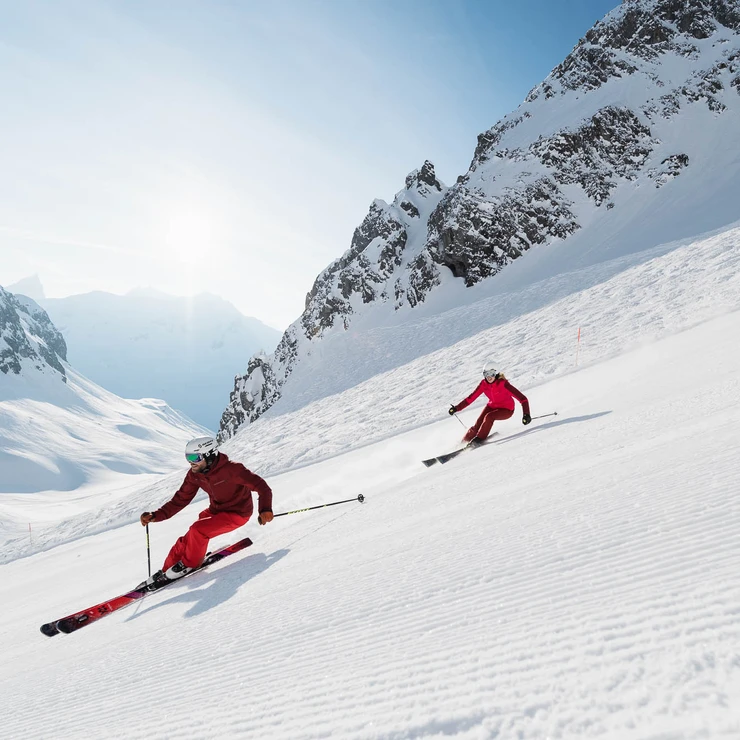 Adrenalin statt Morgenkaffee: Wer sportlich in den Tag starten möchte, erlebt den Langen Zug – eine der steilsten Pisten der Welt – unter besten Bedingungen. Treffpunkt ist bei der Rüfikopfbahn. Im Anschluss ans Skierlebnis gibt es ein Veuve Clicquot-Frühstück im Schlegelkopf Restaurant.