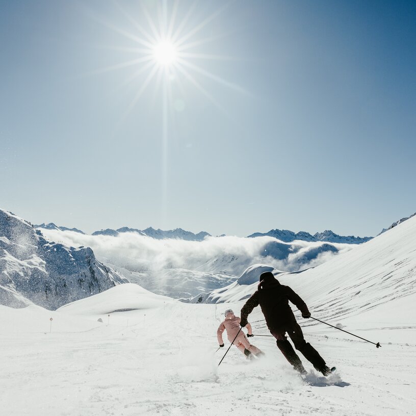 Vom Muggengrat ins Zürser Täli: Diese hochalpine Skiabfahrt begeistert mit genussvollen Schwüngen bis nach Zürs – ein Favorit vieler Skifahrenden.