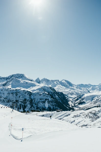 Breite Hänge unter der Hasenfluh in Zürs und der Mohnenfluh in Lech. Ideal für große Radien.