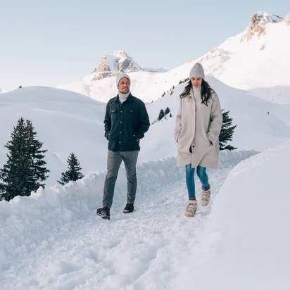Wer die Stille des Winters sucht, findet sie auf den Winterwanderwegen von Lech Zürs. Bahnen und Lifte eröffnen den Zugang zu den schönsten Winterwanderwegen der Region. 50 Kilometer präparierte Wege führen durch verschneite Wälder und über sonnige Hochplateaus.
