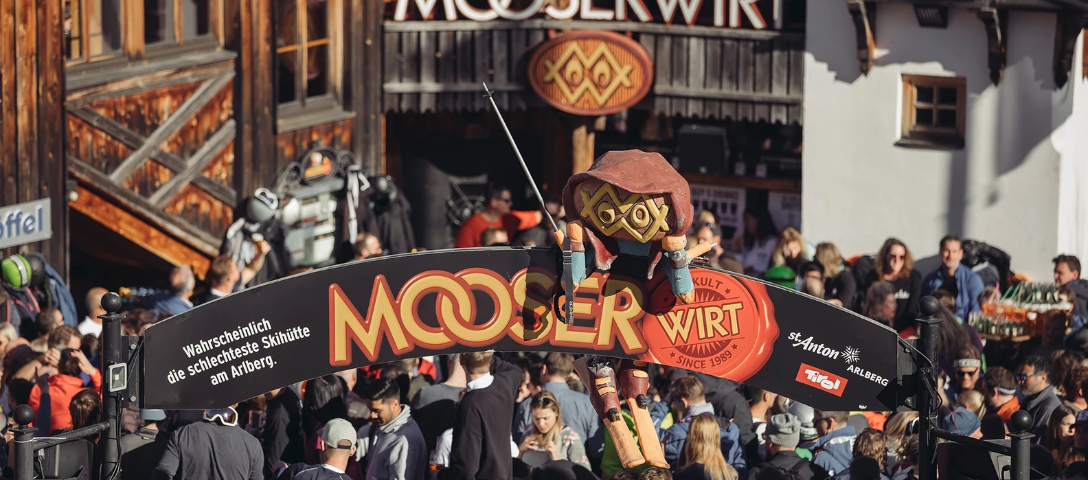 Trotz seines bekannten Slogans „Wahrscheinlich die schlechteste Skihütte am Arlberg“ ist der MooserWirt in Wahrheit eine der international beliebtesten Après-Ski Locations in Europa. Das tägliche Angebot startet mit einer großen Auswahl an Speisen und Getränken ab 11:00 Uhr in entspannter Atmosphäre und geht ab 15:00 Uhr ins Après-Ski mit einem täglich wechselnden Programm und Live-DJs über.