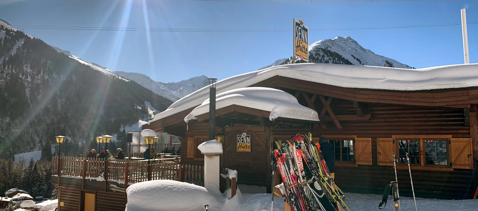 Nur einen kleinen Abstecher von der Piste entfernt liegt die Sennhütte auf der Talabfahrt Nr. 50 in Richtung St. Anton.