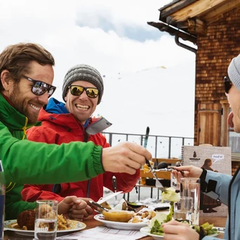 Die Hochalphütte liegt direkt an der Piste auf 1.850 Metern Seehöhe mit Blick ins Hochtannberggebiet. Serviert werden herzhafte Klassiker, feine Hüttengerichte und regionale Spezialitäten. Das Team verbindet persönliche Gastfreundschaft mit alpinem Flair. Gäste genießen ihre Pause in der warmen Stube oder auf der großen Sonnenterrasse mit Panoramablick. Hier wird Einkehren zum Erlebnis.