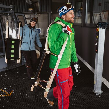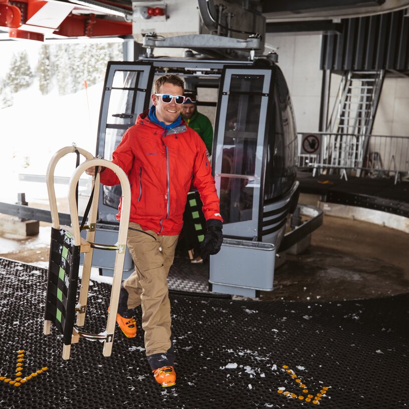 Komfortabel, bequem und voller Vorfreude geht es in den Kabinen der Dorfbahn hoch an den Start der Rodelbahn. Kaum ist man oben, geht es auch schon mit dem Schlitten wieder talabwärts. Die Auffahrt ist tagsüber mit einem gültigen Skipass, einem Rodelticket oder mittels Einzelfahrttickets möglich. Spezielle Abendrodeltickets sind an der Talstation erhältlich.