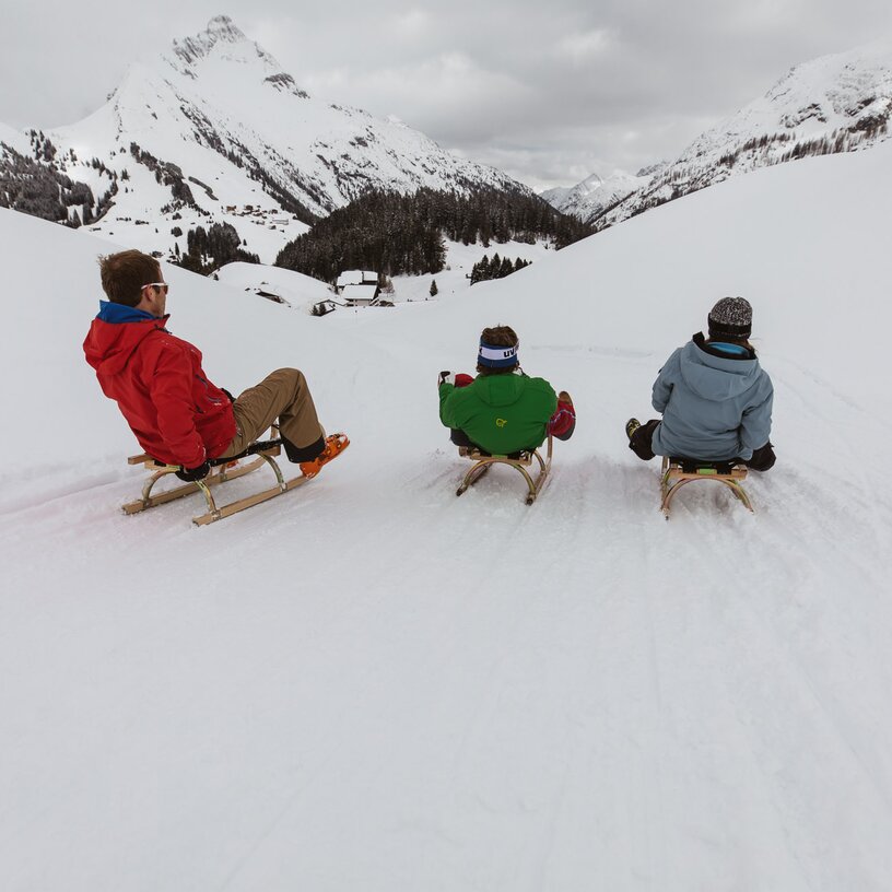 Ein besonderes Erlebnis ist das Rodeln am Abend. Beleuchtete Strecken in Warth und in Schröcken schaffen eine einzigartige Atmosphäre und machen die Abfahrt zu einem Winterabenteuer. Ideal, um den Wintertag mit der Familie oder mit Freunden ausklingen zu lassen – vielleicht verbunden mit einer gemütlichen Einkehr in eines der Gasthäuser.